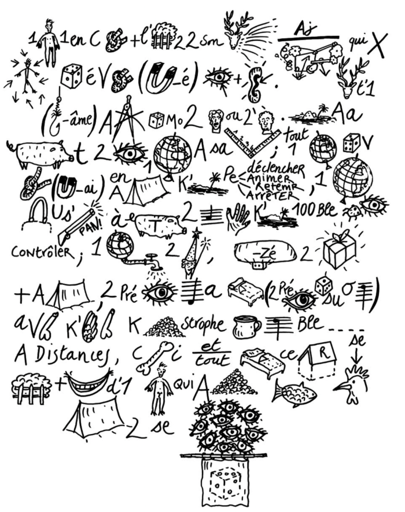 Un homme seul en scène – avec l’aide de son servant – agit sur des dispositifs poétiques qui produisent tout autour de lui des évènements visibles et sonores. Certains sont accompagnés des mots de Paul Valéry ou de Jean-Pierre Brisset.