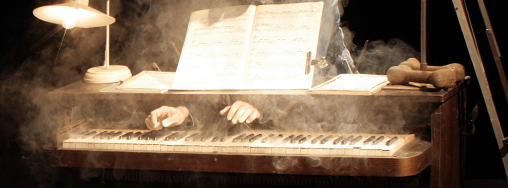 Tremblez, machines ! est une pièce à quatre mains. Quatre mains pour faire quoi ? À loisir, tracer quatre traits, jouer quatre mesures, écrire quatre mots. Mais encore ? On peut imaginer bien d’autres possibilités, que Jean Pierre Larroche et Catherine Pavet explorent avec autant d’humour que d’application. Ils ne sont pas venus les mains vides : le piano, pour l’une, le pinceau, pour l’autre, prolongent au-delà du bout de leurs doigts leurs exercices symétriques. Ils sont même capables de faire marcher leurs instruments à distance, s’il le faut. Sous le contrôle d’un métronome malicieux, ils tirent les fils de leurs inventions plastiques et musicales, en dialogue et en cadence.