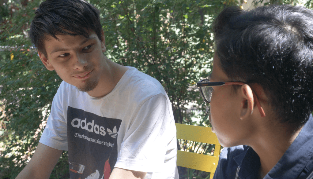 Le premier jour nous avons déblayé les grandes lignes de la fabrication d’un film avec pour support des extraits de films. Rapidement, nous avons fait le choix d’un sujet. Pour cet atelier, les stagiaires ont souhaité parler du harcèlement, à mon grand étonnement. Après discussion, il est apparu nécessaire pour eux de parler d’une problématique qui les concerne au quotidien. Je leur ai demandé décrire par groupe de deux un paragraphe pour raconter une histoire qui traite de ce sujet. Chaque groupe a lu son histoire. Puis je les ai amené à écrire une seule histoire à partir des idées révélées les plus intéressantes. Très rapidement les rôles ont été distribués ou choisis. Chacun.e devait apporté son/ses costume/s pour le lendemain. Le lendemain nous avons fait de rapides repérages dans la ville pour choisir les décors. Puis, tournage. En fin de stage nous avons pu faire un rapide dérushage, réaliser les sons seuls, choisir le titre du film définitif, le déblayer le choix des musiques, des polices des génériques.